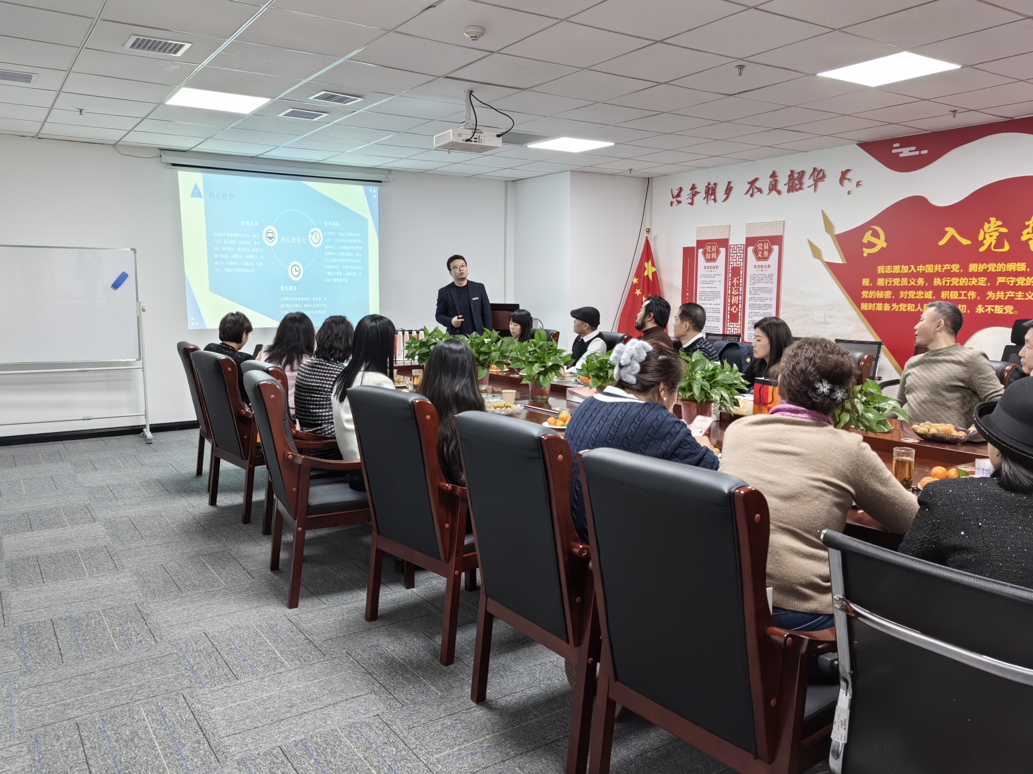 校友们首先在公司前台进行了签到,随后在郑总的带领下参观了公司办公环境,了解了公司的发展历程、企业文化、业务领域以及未来发展规划。郑总详细介绍了公司在行业中取得的成果,并分享了公司未来的战略布局和创新方向,引发了校友们的浓厚兴趣和热烈讨论。