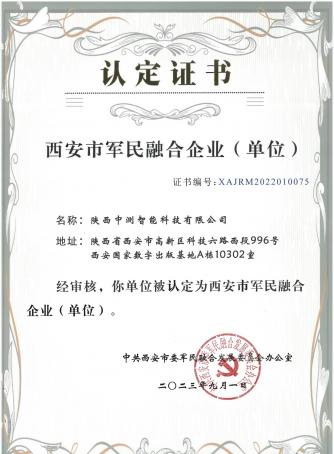 军民融合认定证书